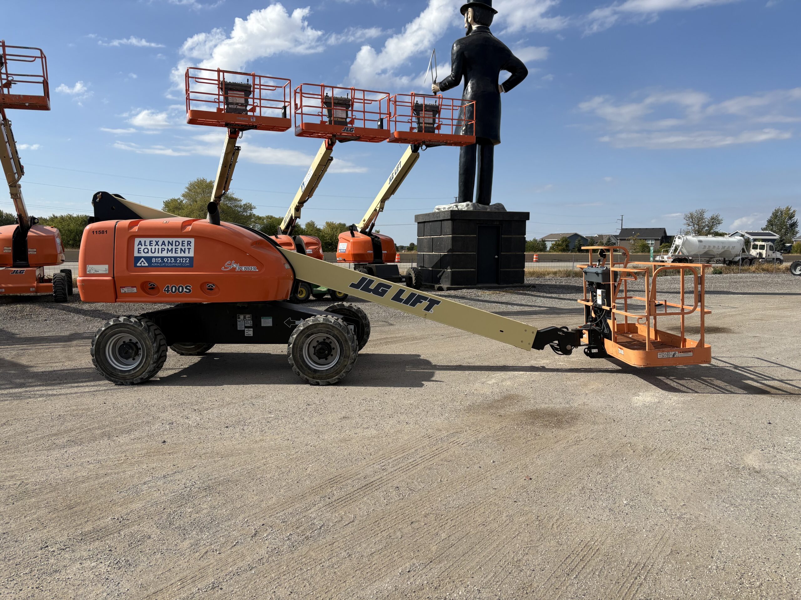This 2023 limited reconditioned JLG 400S telescopic boom lift is for sale. Features include: 40′ platform height, diesel power, and 4 WD.