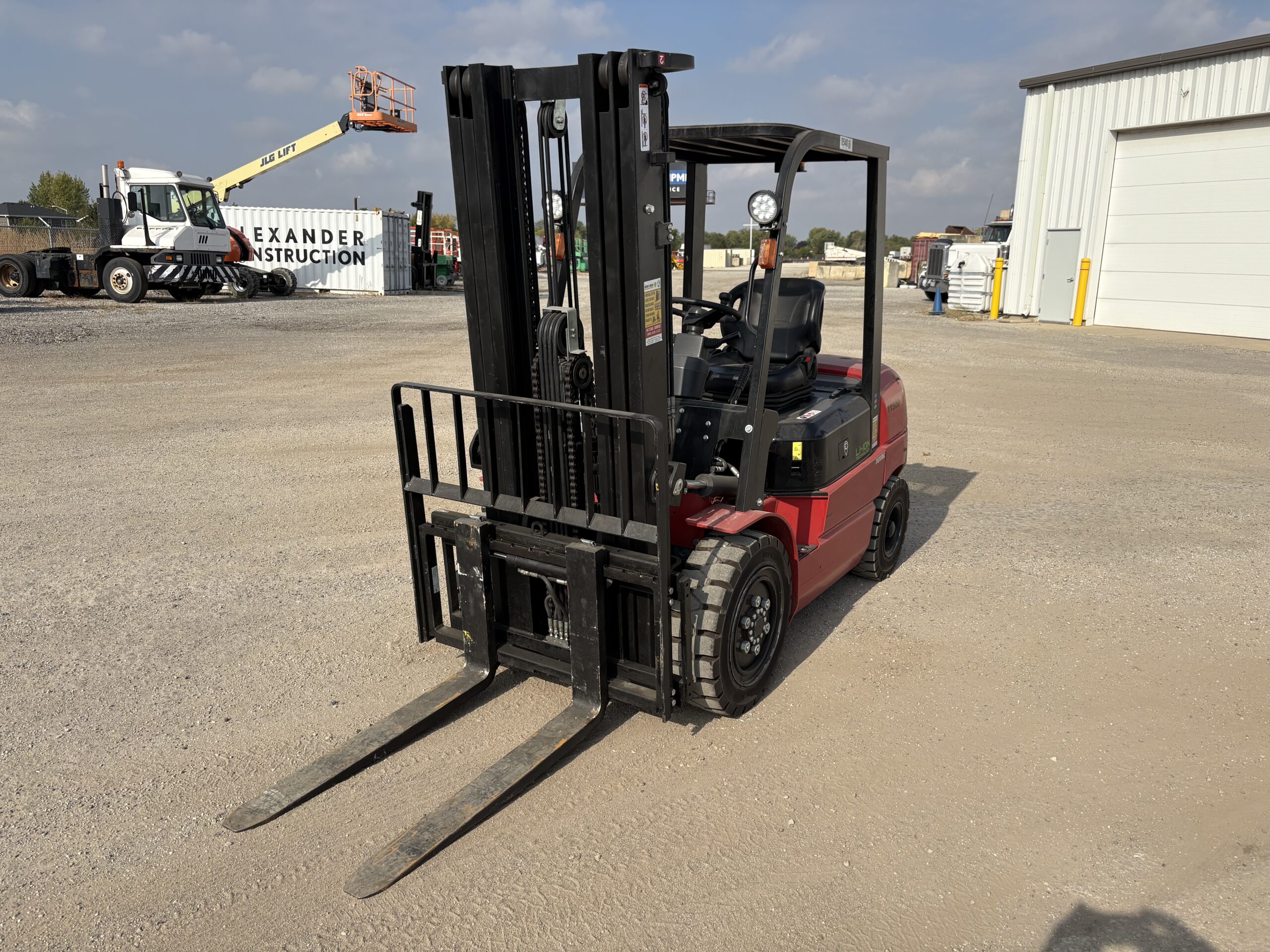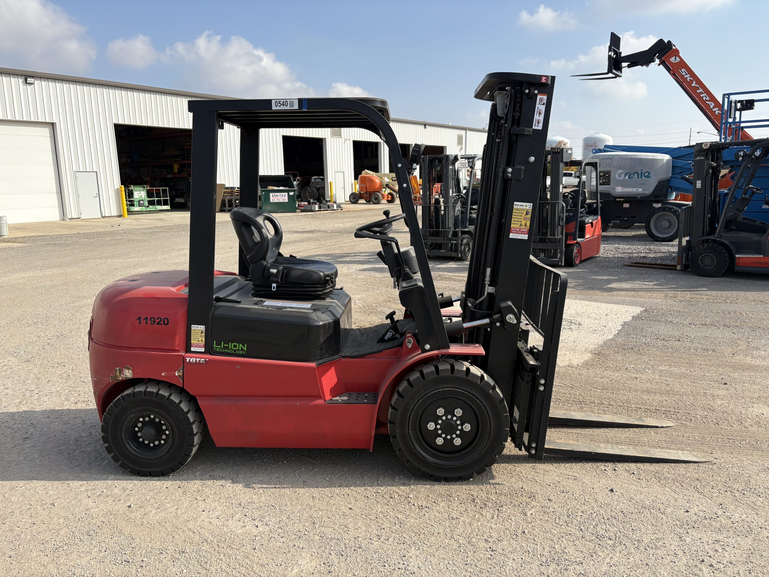 Big Joe LPE-60 electric forklift. Features: electric power, 6000 lb lifting capacity, side shift and 3 stage / 197 in max lift height. Low hours!