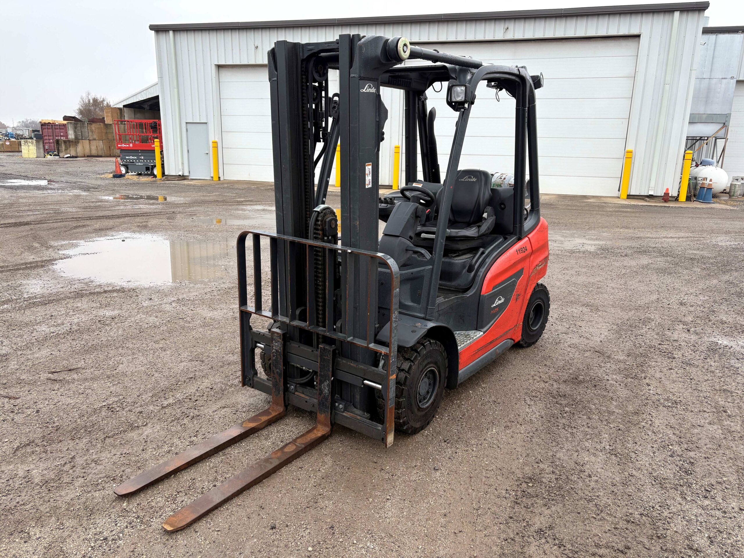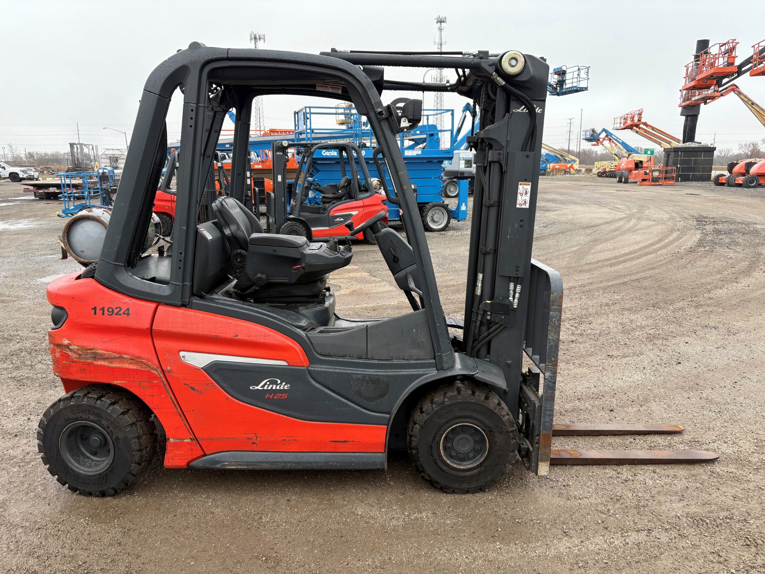 Linde H25T forklift. Features: LP gas power, 5000 lb lifting capacity, and 3 stage / 193 in max lift height.