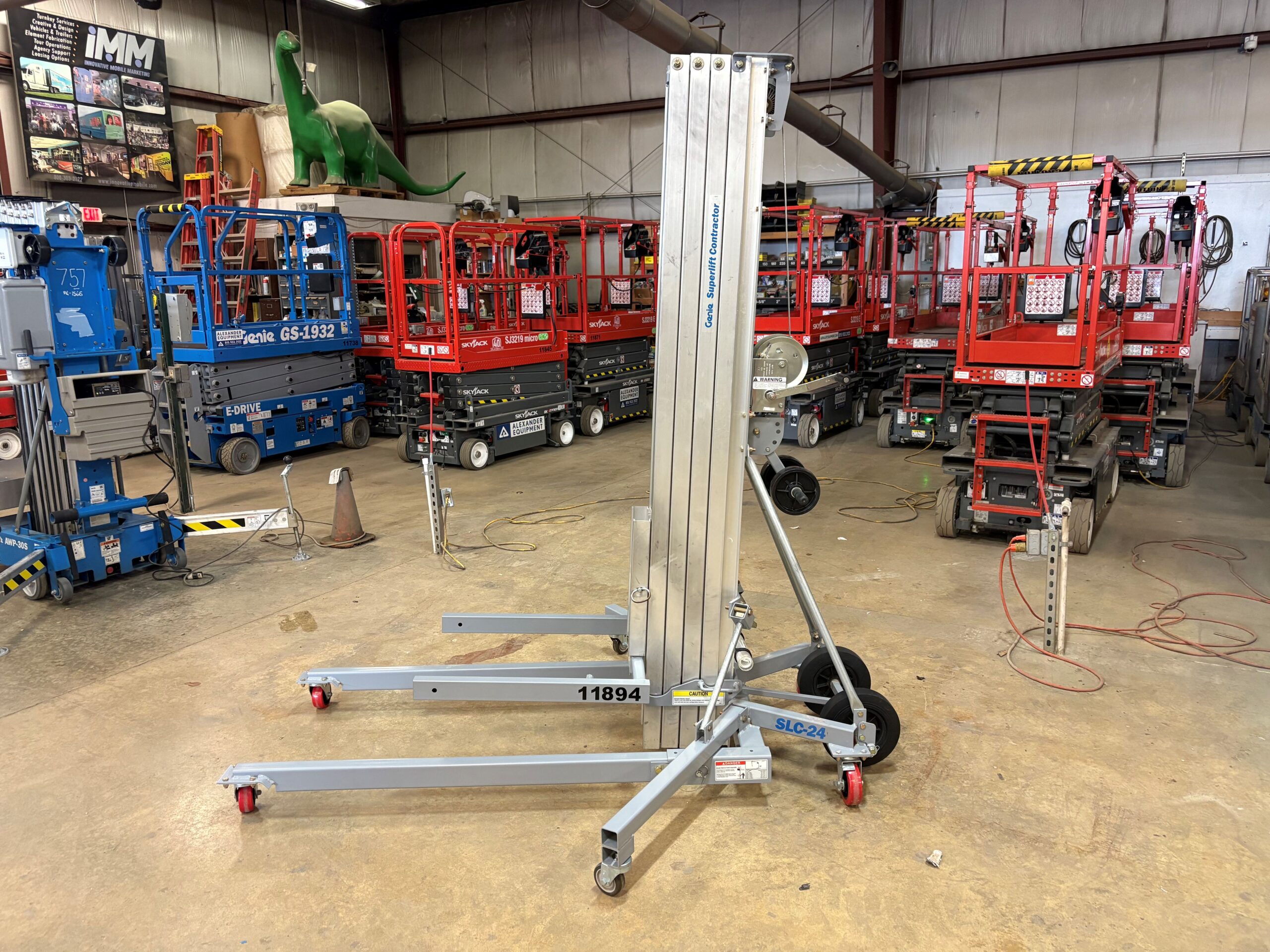Genie SLC-24 material lift. Features include: 24′ max lift height, and 650 lb lifting capacity.