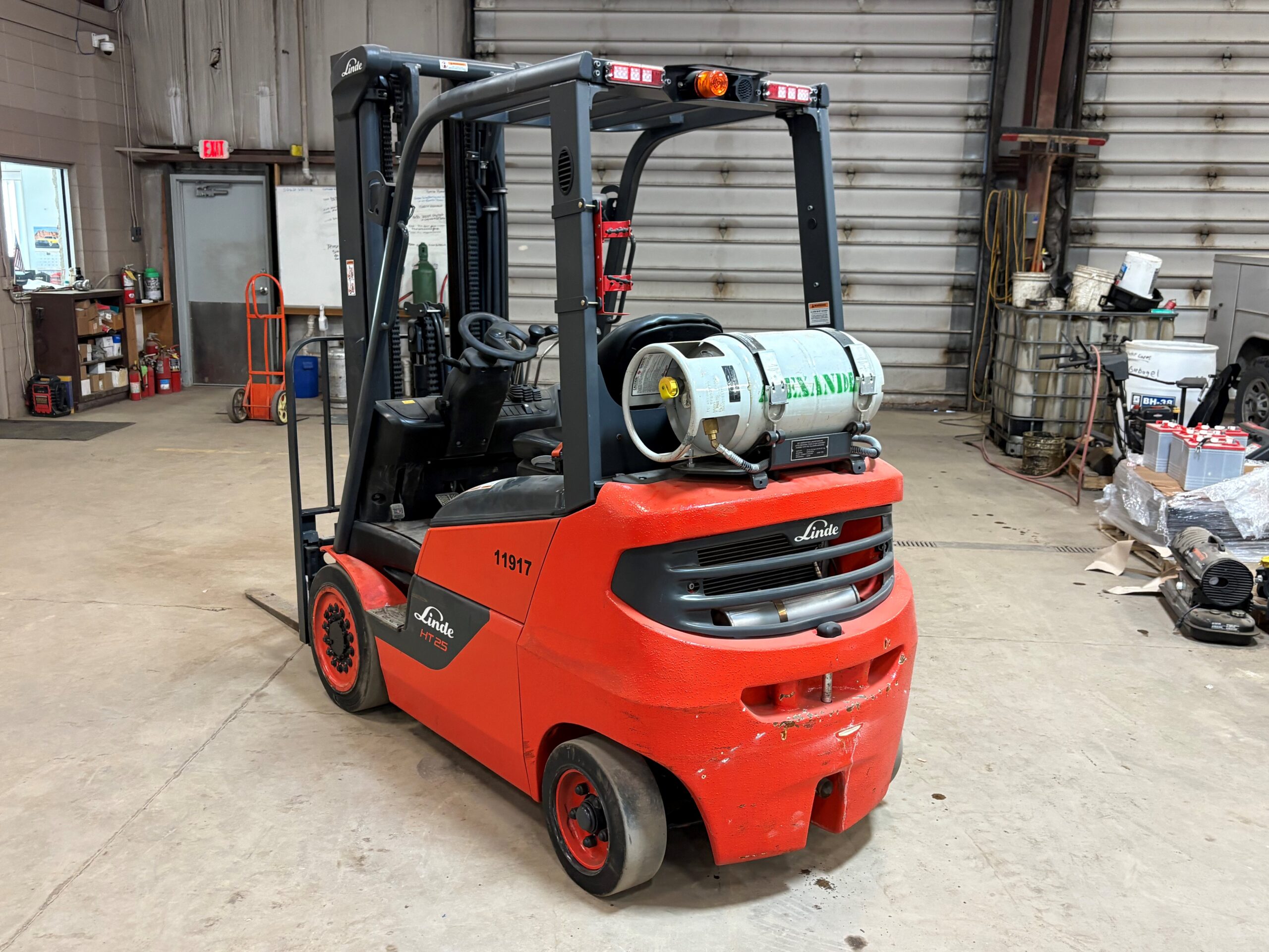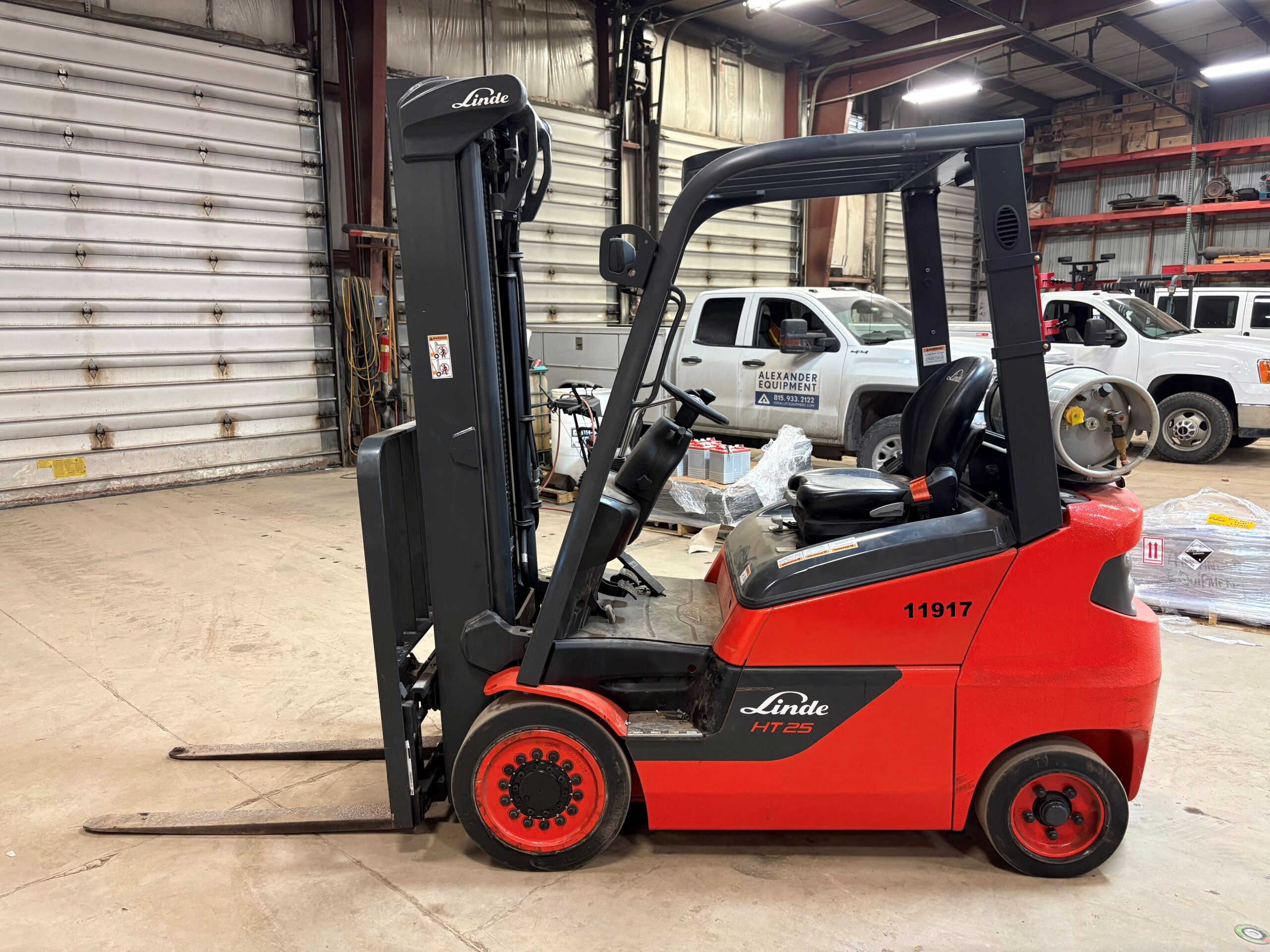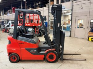Linde HT25CT forklift. Features: LP gas power, 5000 lb lifting capacity, 3 stage 203 in max lift height.