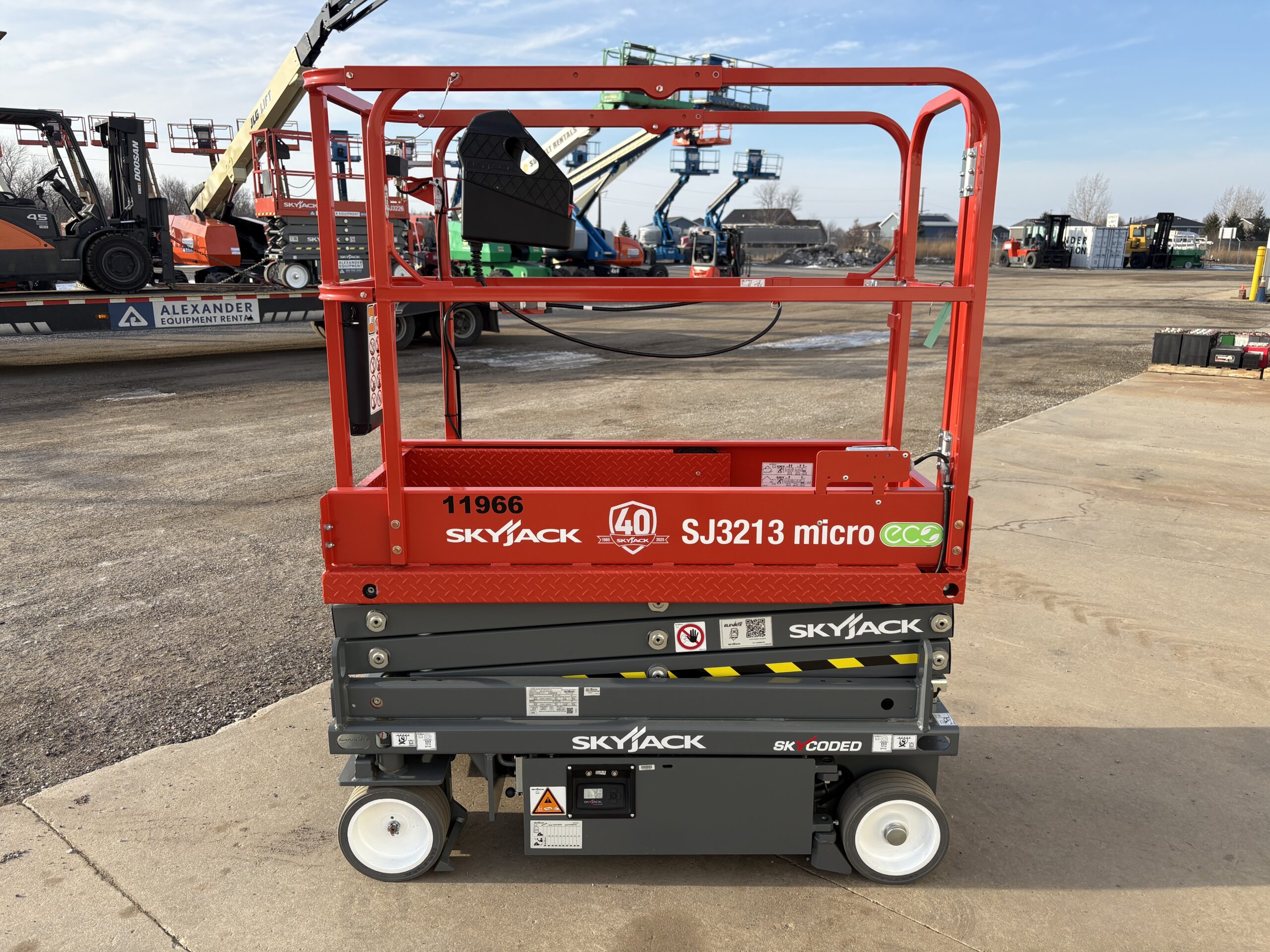 New Skyjack SJ3213E Micro Electric Scissor Lift. Features a 13-foot platform height, non-marking tires