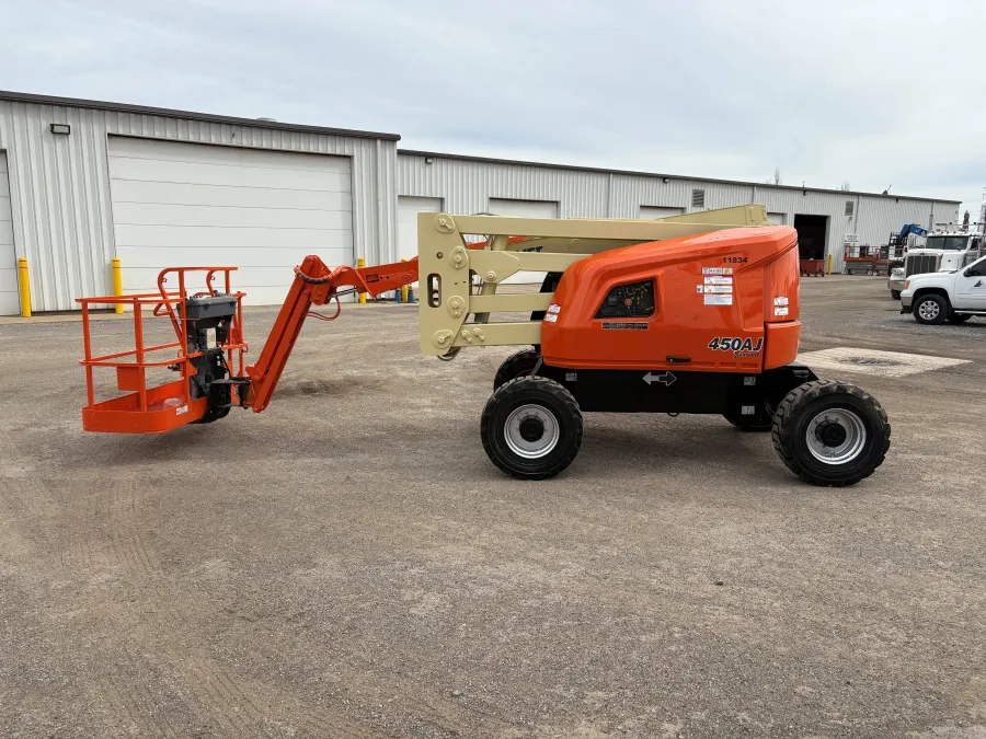 2016 JLG 450AJ articulating boom lift is for sale. Features include: 45′ platform height, jib, diesel power, and 4 WD.