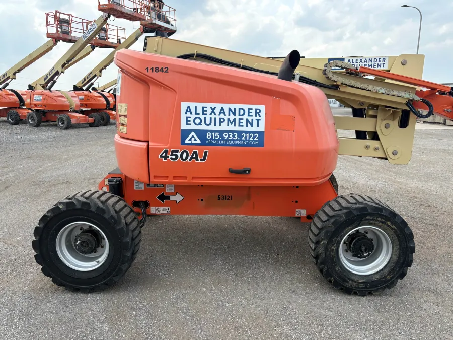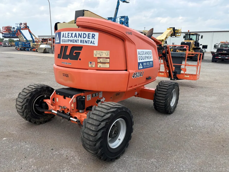 2017 JLG 450AJ articulating boom lift is for sale. Features include: 45′ platform height, jib, dual fuel power, and 4 WD.