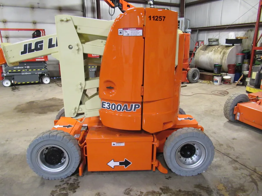 JLG 300AJP electric articulating boom lift. Features: 30′ platform height, rotating jib.