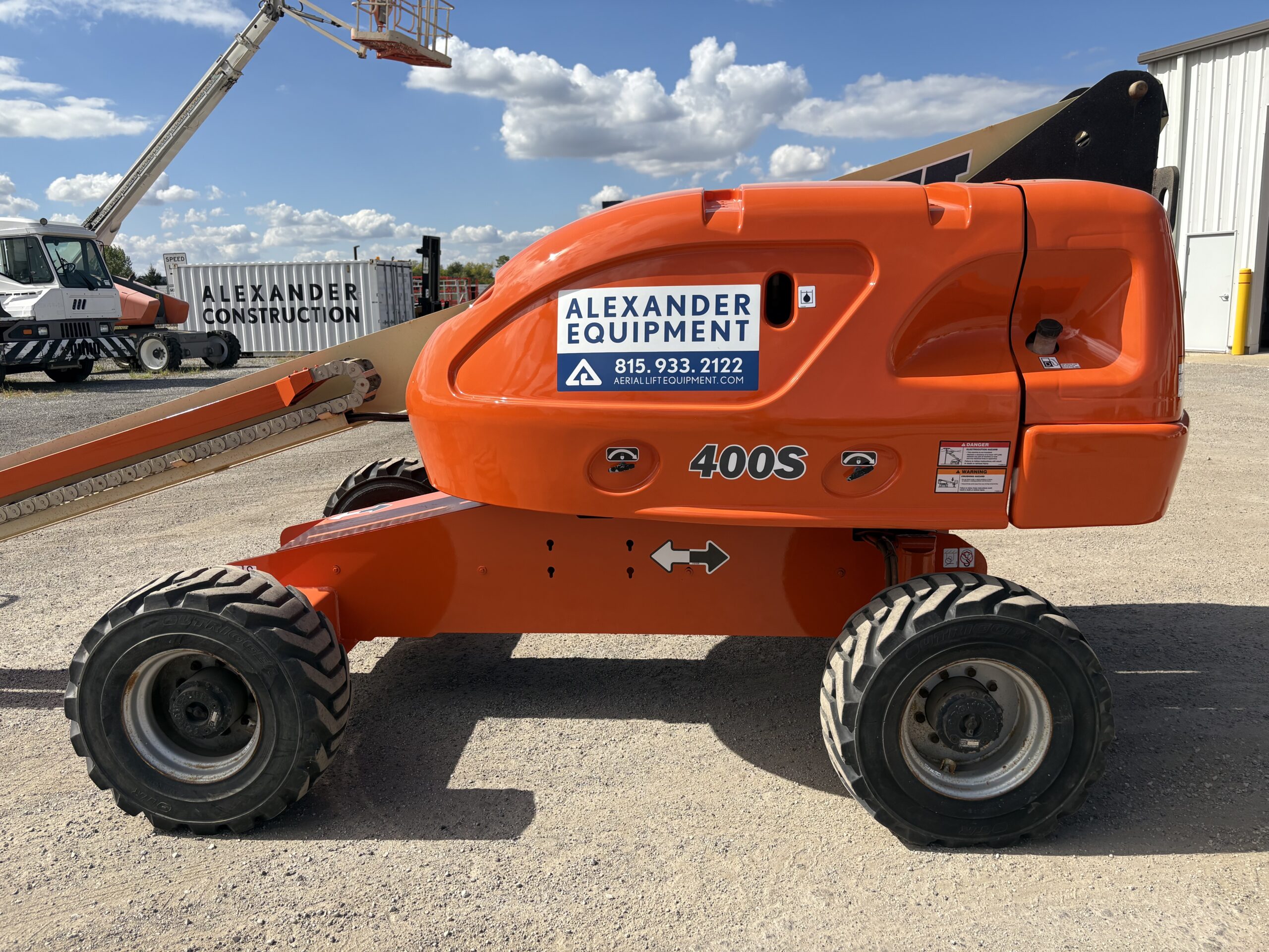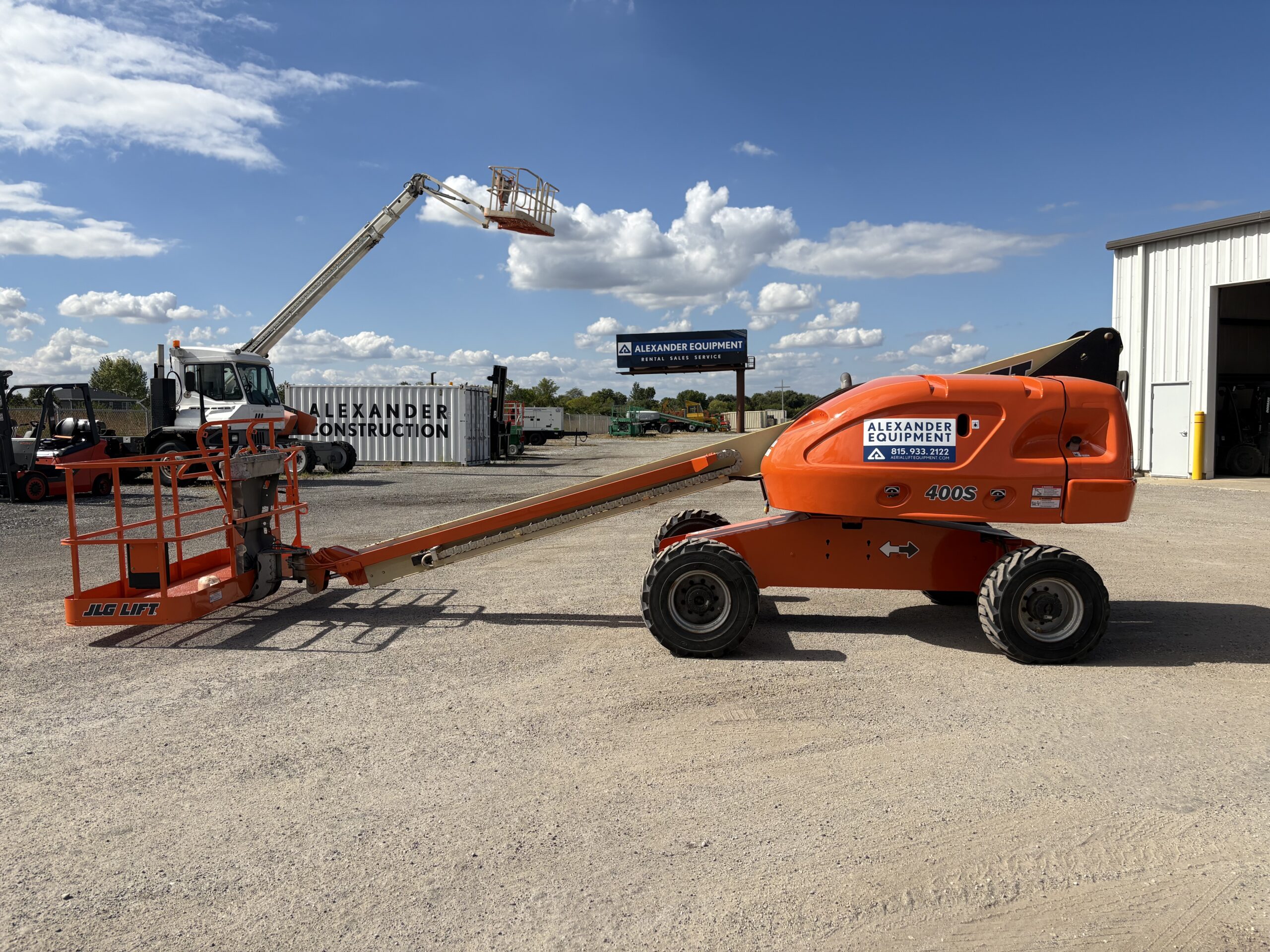 JLG 400S telescopic boom lift is for sale. Features include: 40′ platform height, diesel power, and 4 WD.