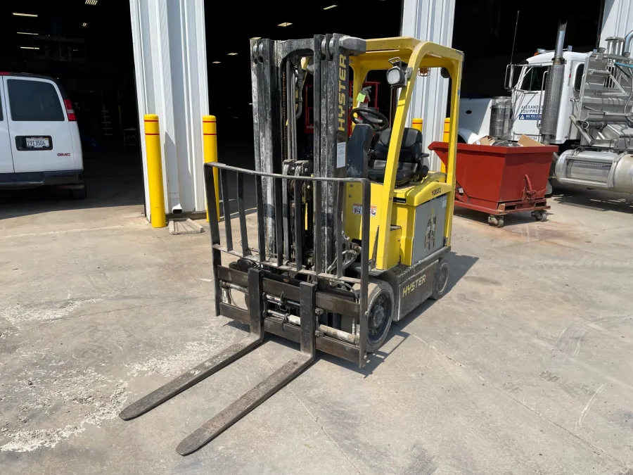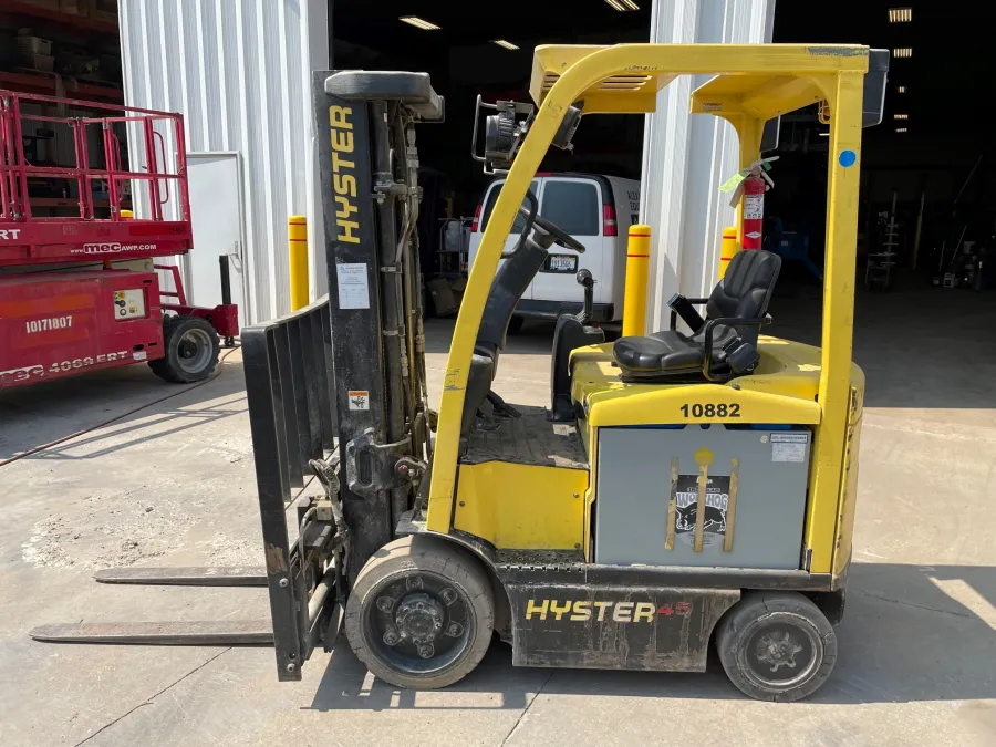 For sale: Hyster E45XN-27 forklift. Features: electric power, 4500 lb lifting capacity and 3 stage / 189 in max lift height.