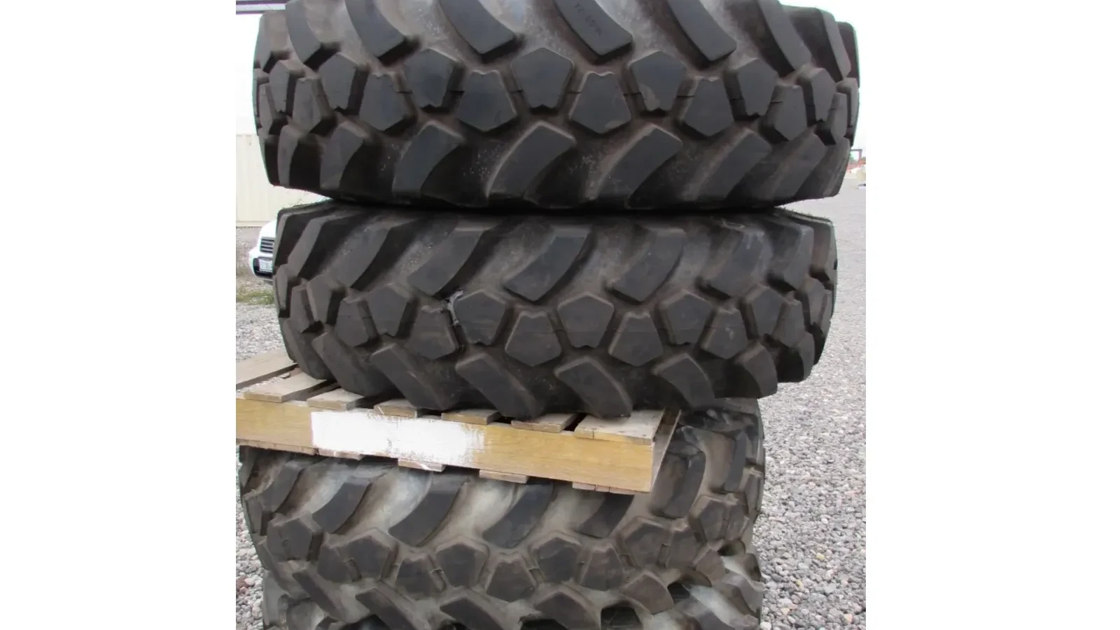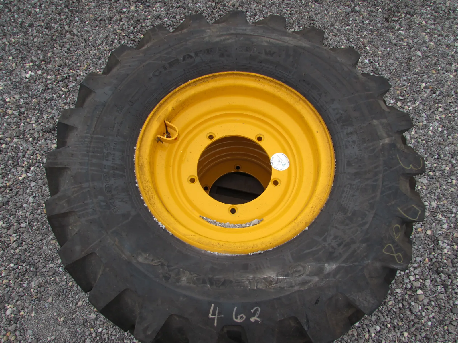 For sale: 4 New Galaxy Giraffe XLW foam filled tires for JCB reach forklift. Size: 14.00-24, mounted on 5 lug rims. Additional sets available.