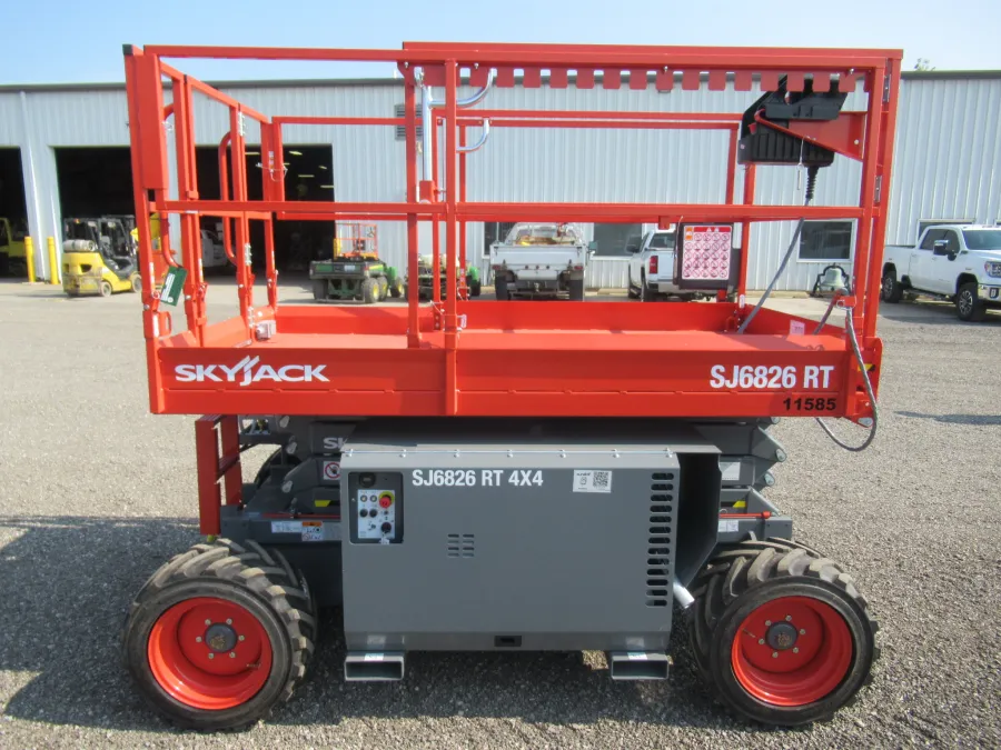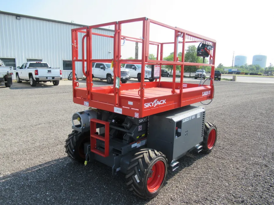 This brand new Skyjack SJ6826RT rough terrain scissor lift is for sale. Features: 26′ platform height, 4WD,1250 lb lifting capacity, dual fuel and extension deck.
