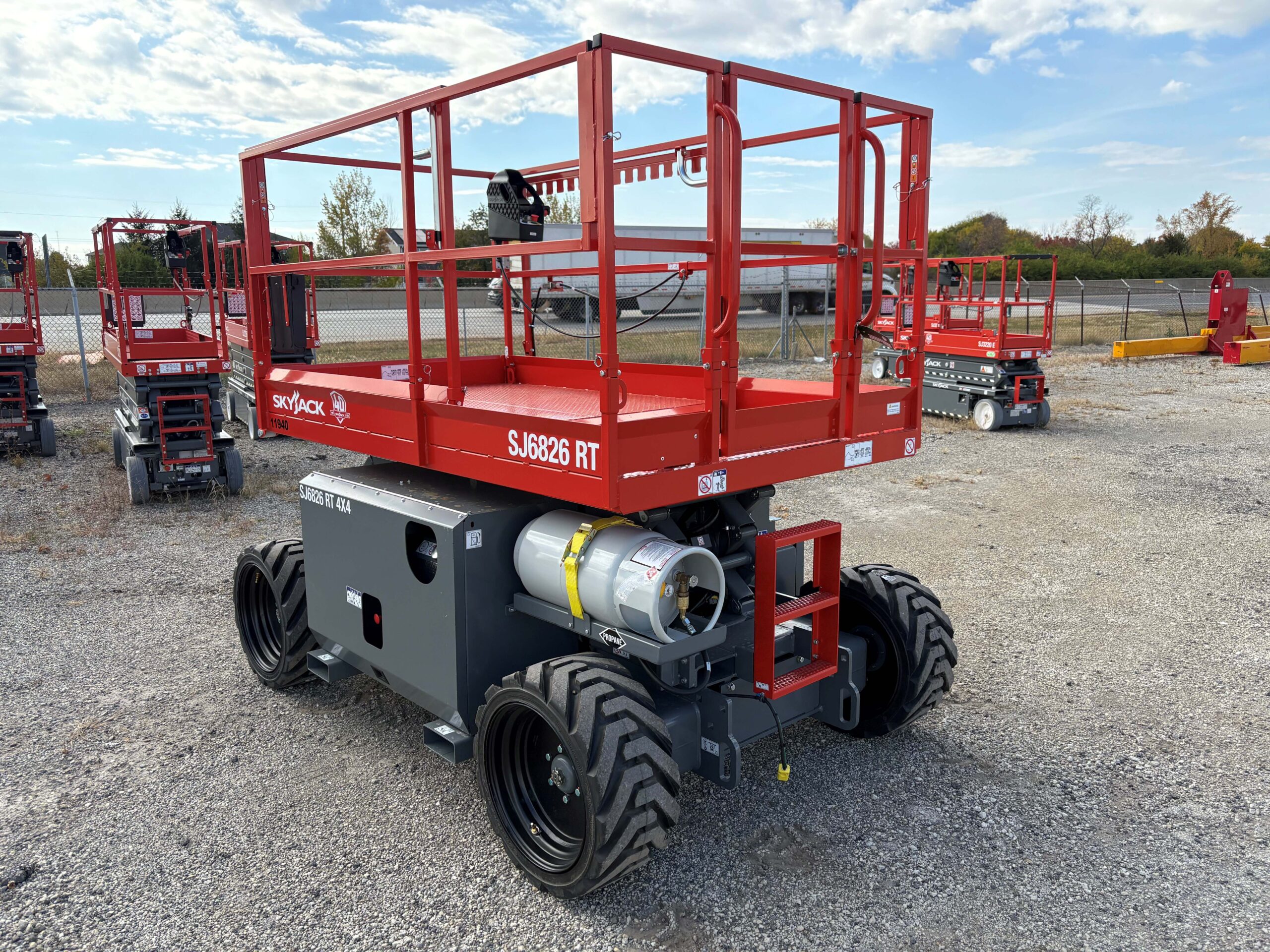 This brand new Skyjack SJ6826RT rough terrain scissor lift is for sale. Features: 26′ platform height, 4WD, 1,250 lb lifting capacity, dual fuel and extension deck.
