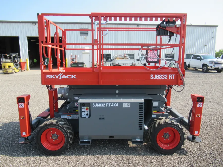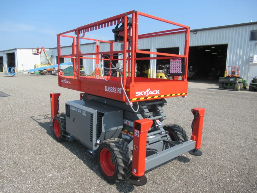 This brand new Skyjack SJ6832RT rough terrain scissor lift is for sale. Features: 32′ platform height, 4WD, outriggers,1000 lb lifting capacity, dual fuel and extension deck.