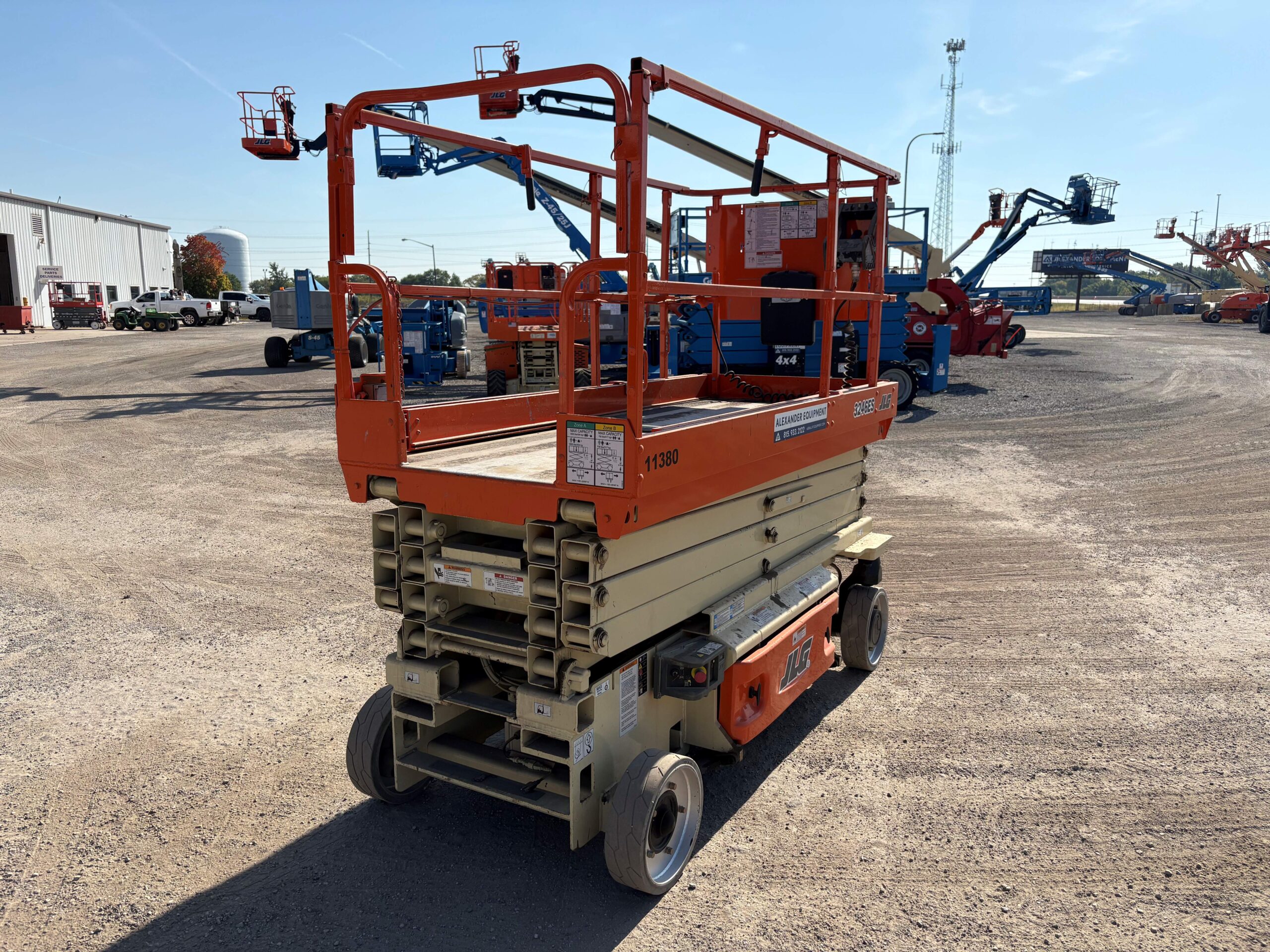 JLG 3246ES electric scissor lift for sale. Features: 32′ platform height, recent batteries, 700 lb platform capacity, non-marking tires and extension deck.