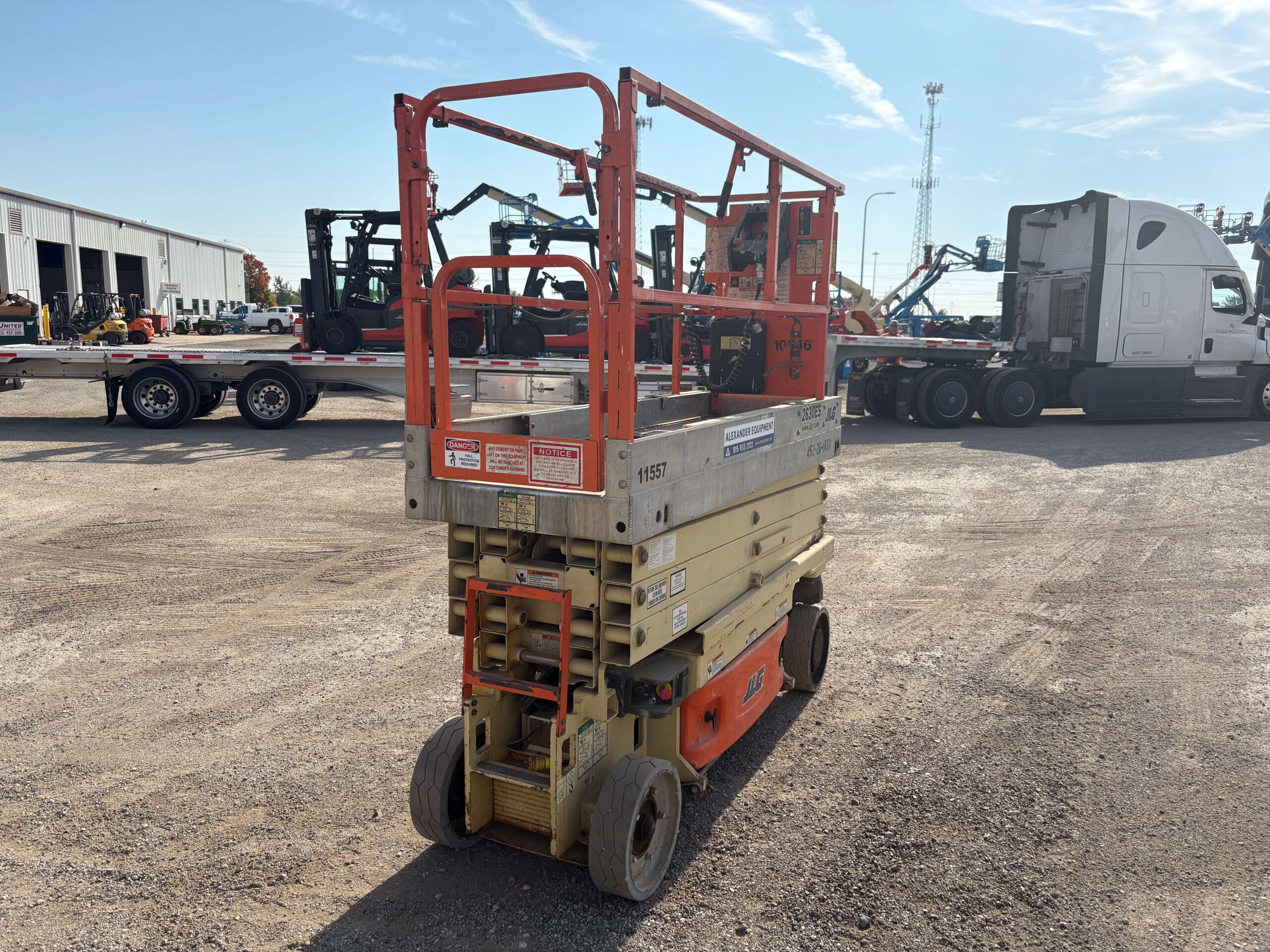 JLG 2630ES electric scissor lift for sale. Features: 26′ platform height, recent batteries, 500 lb platform capacity, non-marking tires and extension deck.