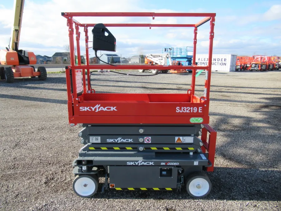 This brand new 2025 Skyjack SJ3219E electric scissor lift is for sale. Features include: 19′ platform height, non-marking tires and extension deck. Several in stock.