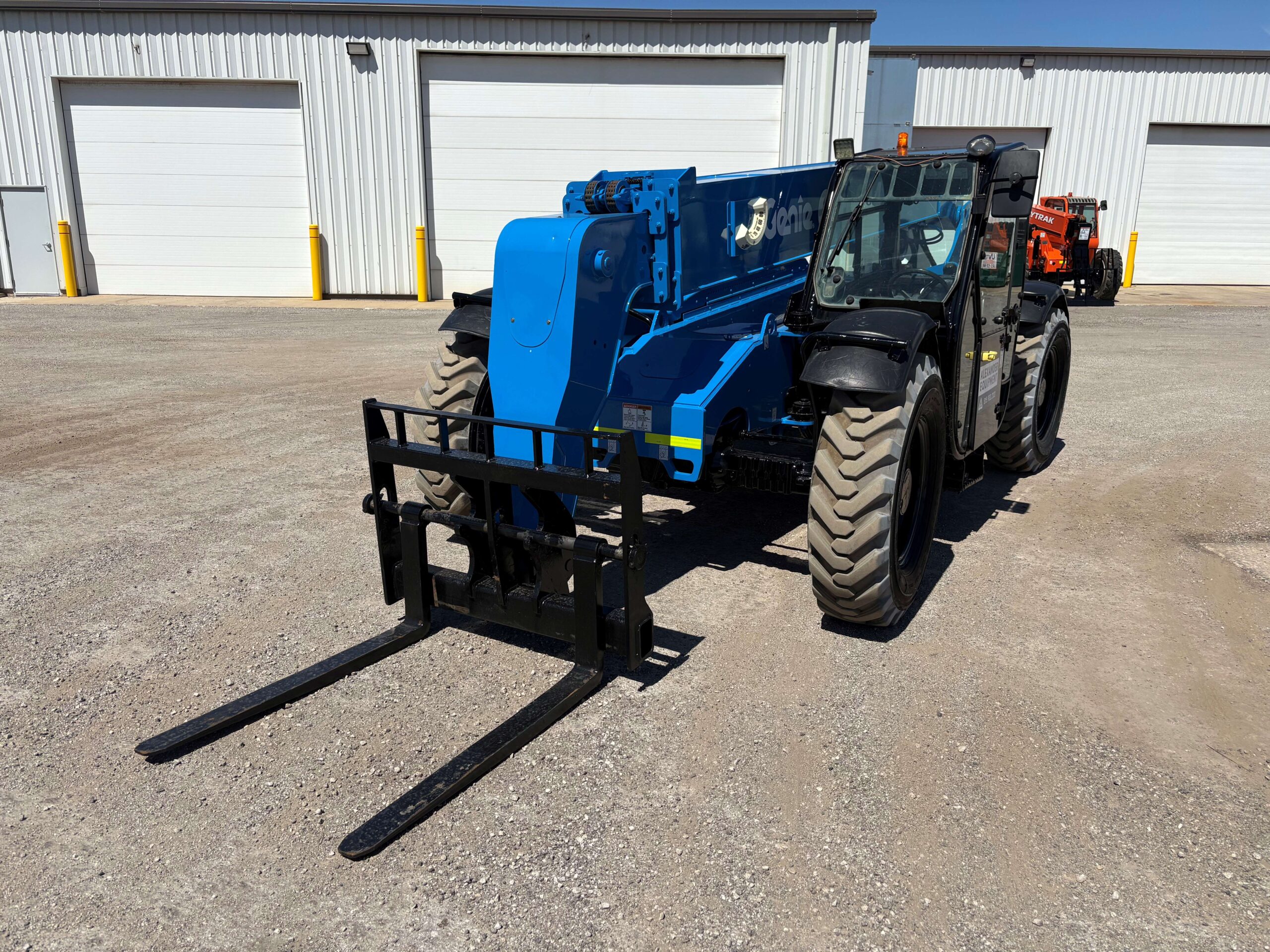 Genie GTH844 reach forklift. Features: 8,000 lb lifting capacity, 44 ft reach and diesel power.