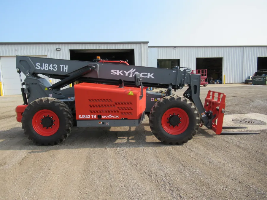For sale: New 2024 Skyjack SJ843TH reach forklift. Features: 8,000 lb lifting capacity, 43 ft reach, foam filled tires, work lights, cold weather package, enclosed cab, heat and diesel power.